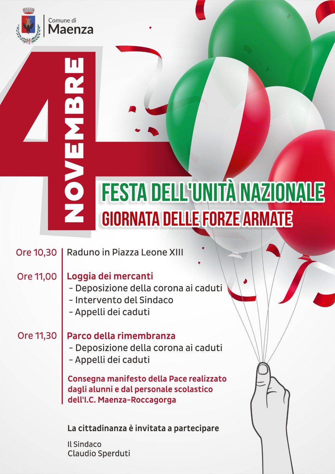 Si invita la cittadinanza a partecipare alla gioranta dell'Unità Nazionale.